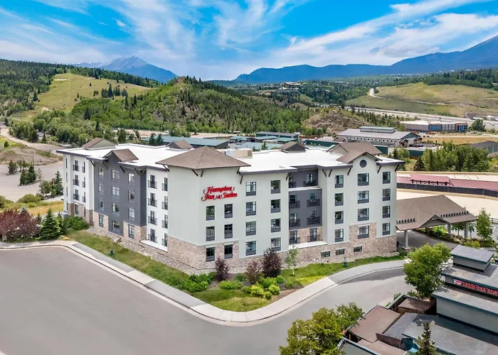 Het 5 verdiepingen tellende Hampton Inn & Suites Silverthorne ligt op een steenworp afstand van Silverthorne Recreation Center en biedt bergzichten aan. Het is een budget inrichting uit 2015.